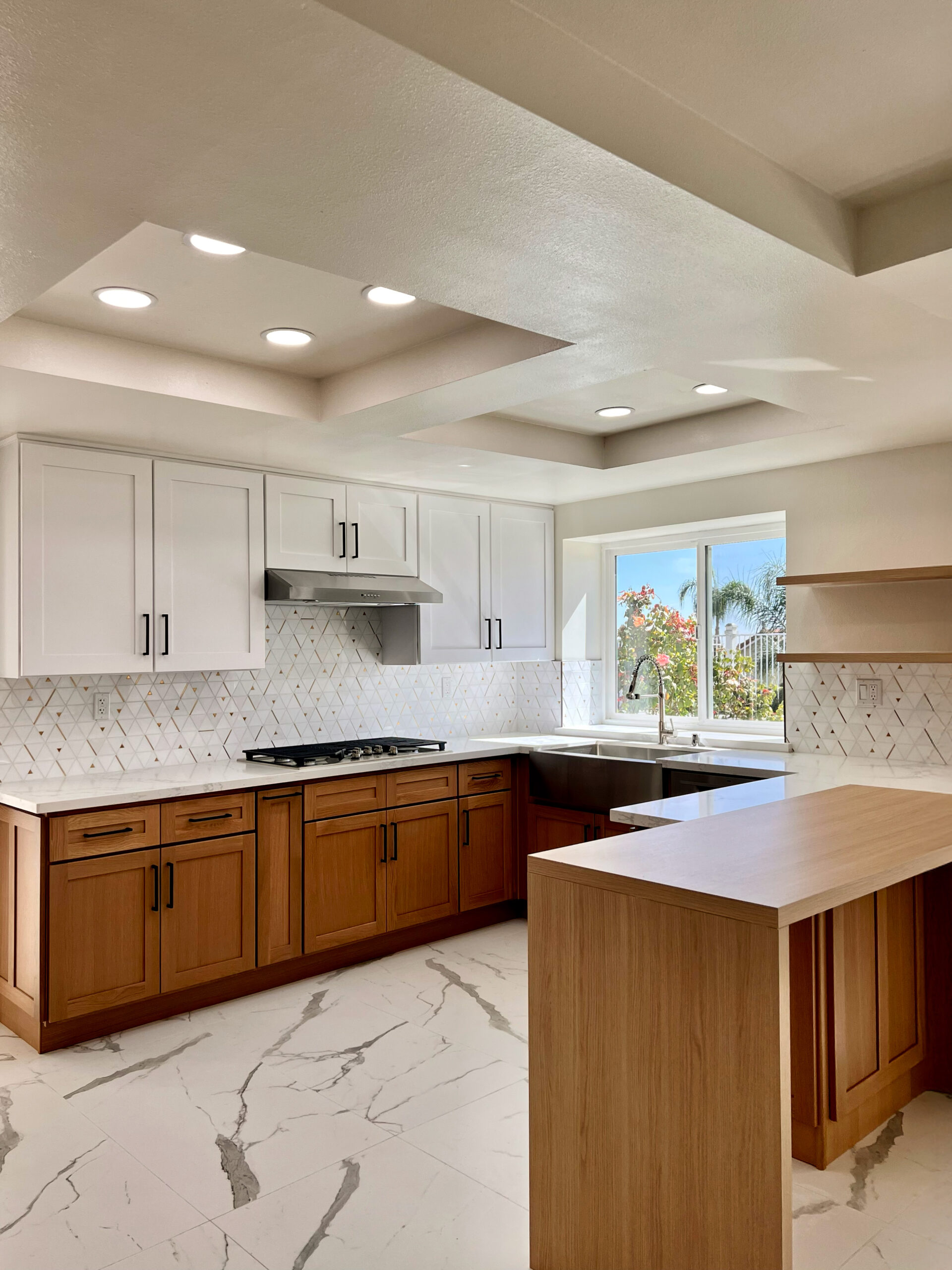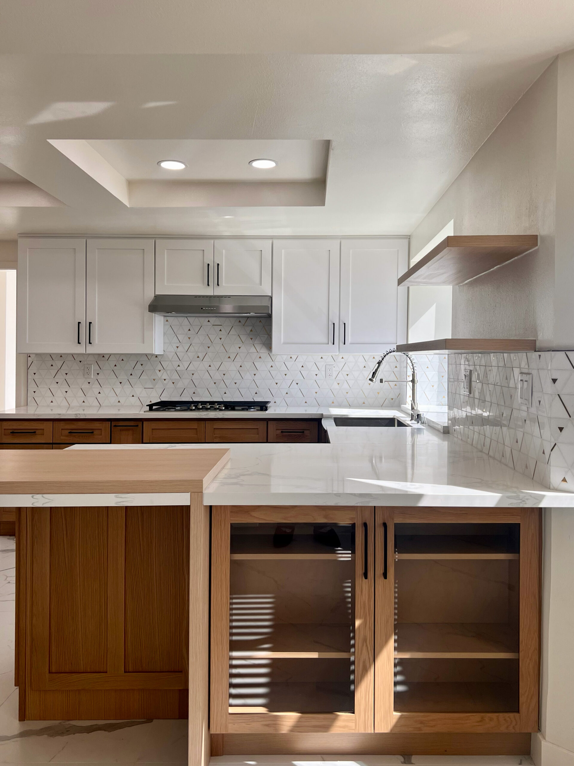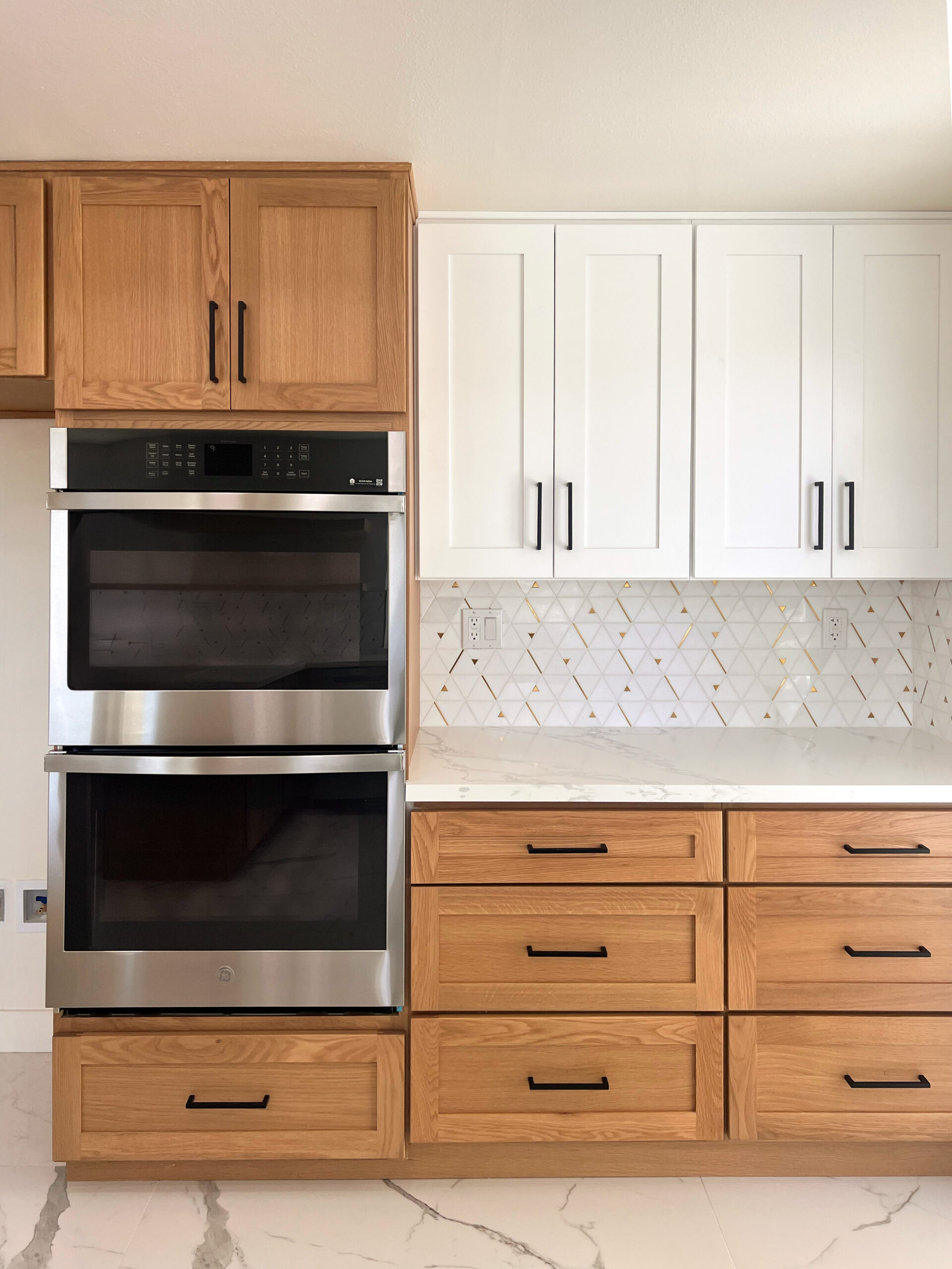 This kitchen pairs our natural Oak Shaker with our crisp White Shaker, creating a clean modern contrast that feels both fresh and timeless. The oak adds depth, texture, and organic warmth, while the white keeps the space open and airy. Together, they deliver a versatile, high-end look that works beautifully in contemporary homes, renovations, and designer-driven projects.