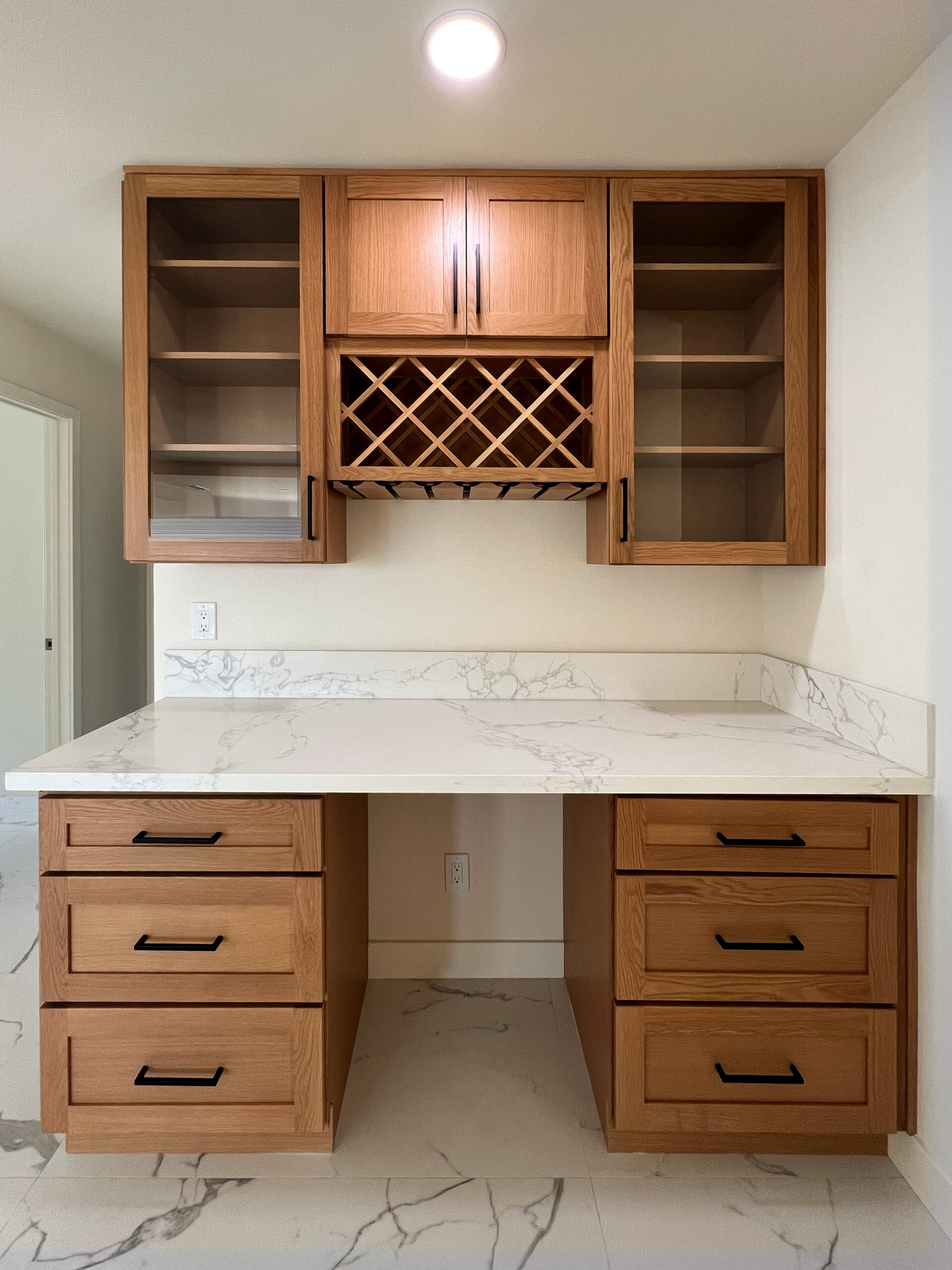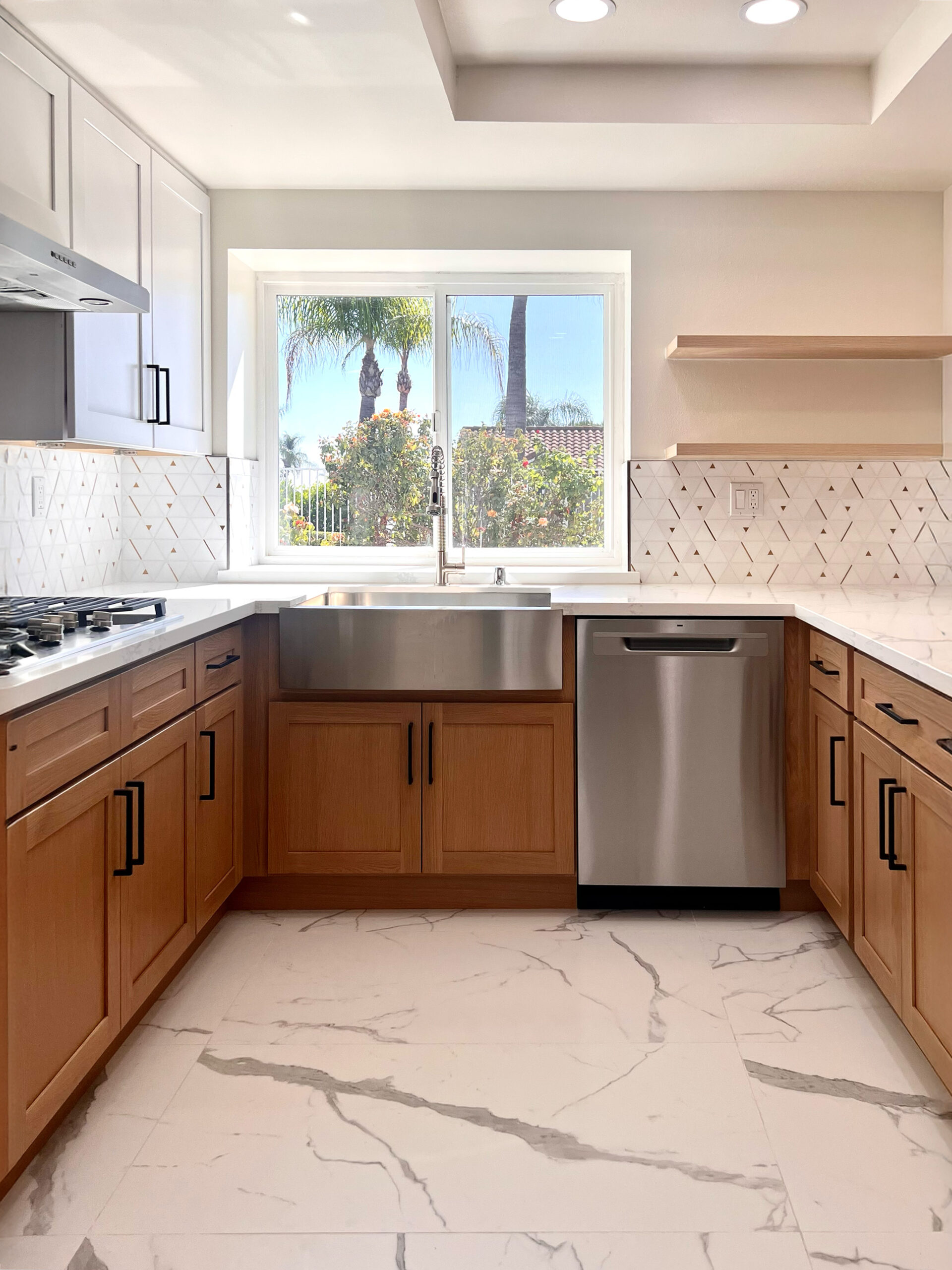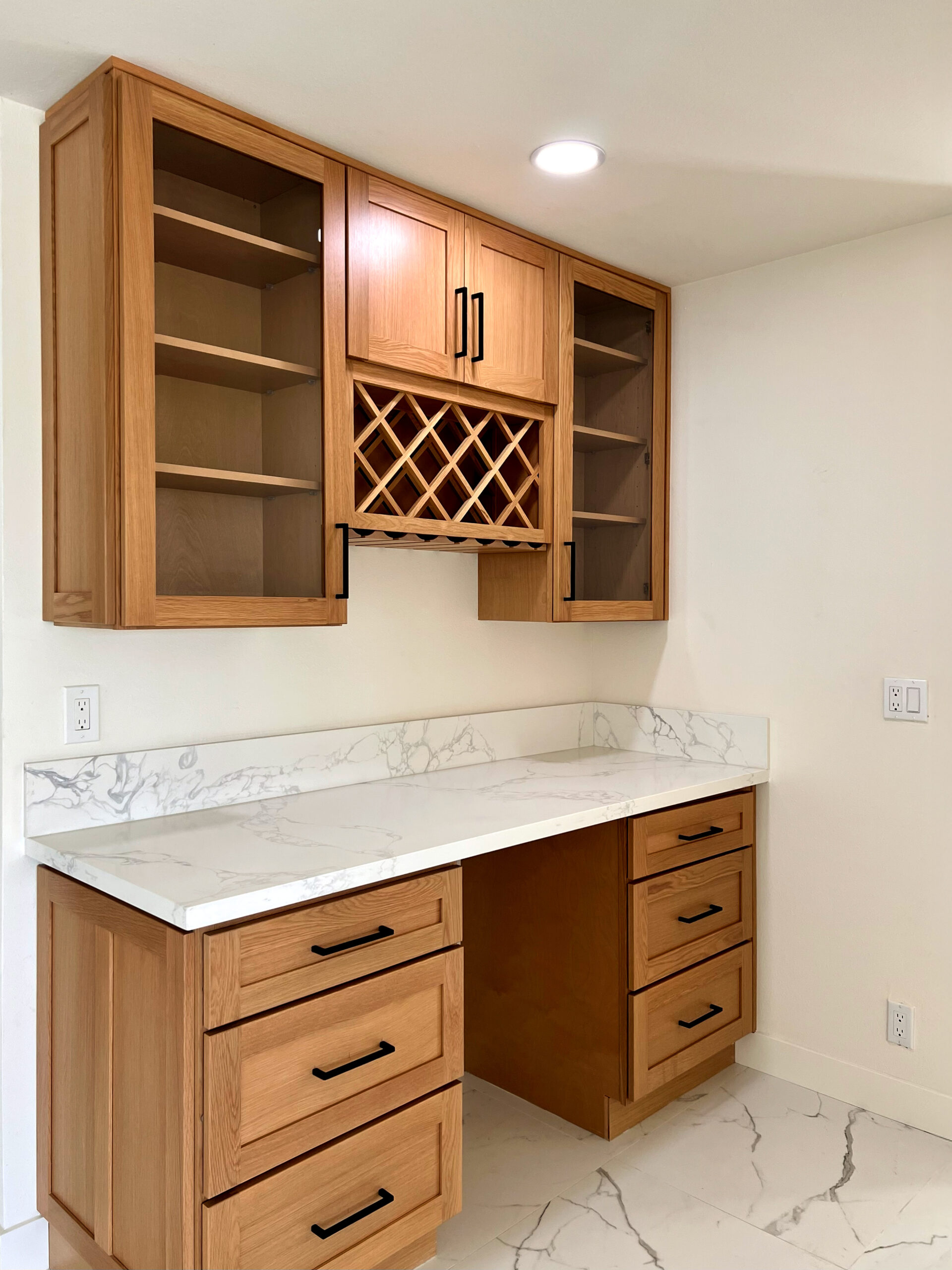 This kitchen pairs our natural Oak Shaker with our crisp White Shaker, creating a clean modern contrast that feels both fresh and timeless. The oak adds depth, texture, and organic warmth, while the white keeps the space open and airy. Together, they deliver a versatile, high-end look that works beautifully in contemporary homes, renovations, and designer-driven projects.